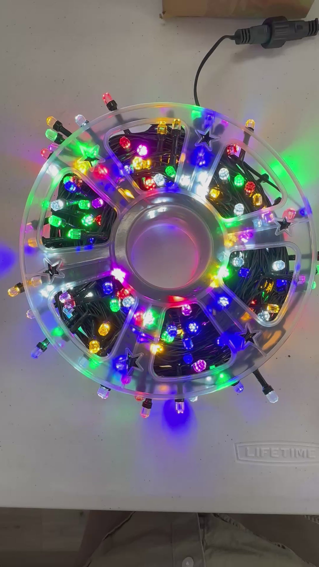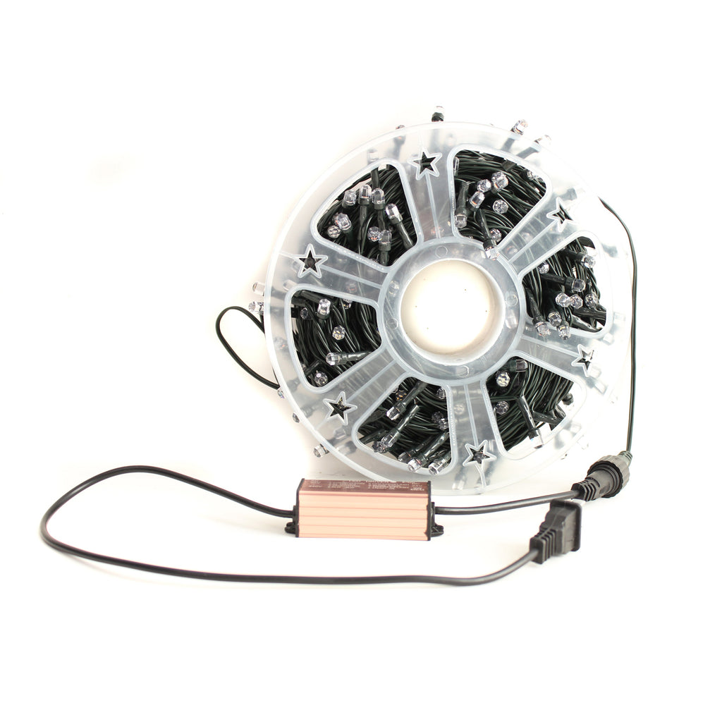 A roll of 300 super-bright LED string lights in multicolor, perfect for decorating large areas or events.